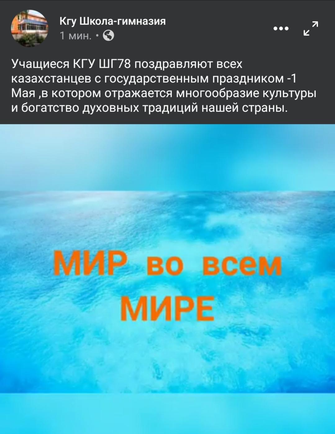 15 сәуір 2021 0 1 2 3 4 5 Мир во всем мире Учащиеся КГУ ШГ78 поздравляют всех казахстанцев с государственным праздником -1 Мая ,в котором отражается многообразие культуры и богатство духовных традиций нашей страны.
