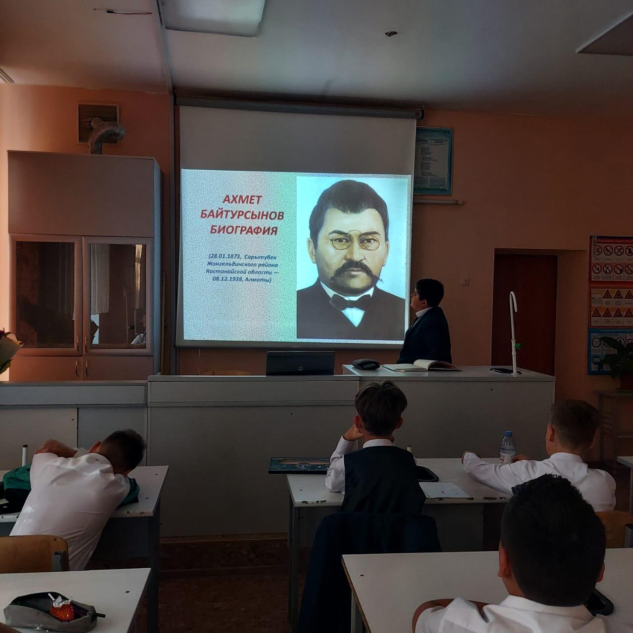 Ахмет Байтұрсынұлының 150 жылдығына байланысты ақынның өмір жолы мен шығармашылығымен, қызмет жолымен таныстыру.