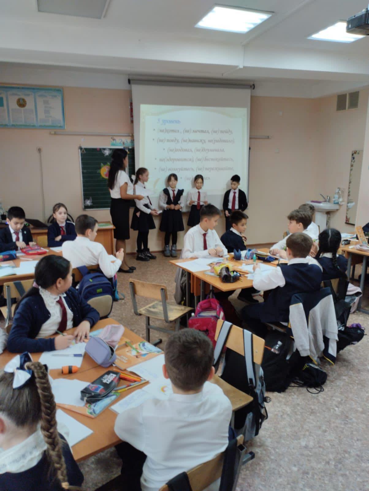 9 ақпан күні 78 МГ-да бастауыш сынып онкүндігі аясында 4-сынып мұғалімі С.Х.Имирова «Емес шылауының етістікпен бірге жазылу емлесі» тақырыбында ашық сабақ өткізді.Балалар осы тақырып бойынша алған білімдерін жоғары деңгейде көрсете білді.