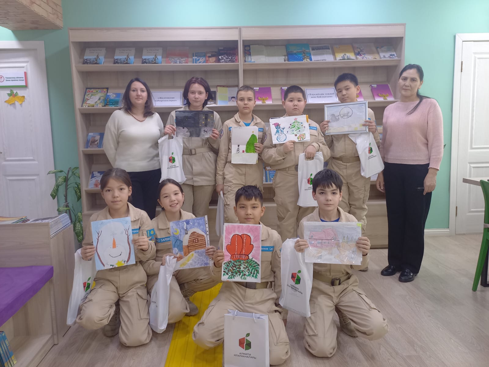 5а сынып оқушылары № 30 балалар кітапханасы ұйымдастырған суреттер байқауына қатысты. Балалар өз суреттері үшін сыйлықтар алды. Учащиеся 5А класса приняли участие в конкурсе рисунков, который организовала Детская библиотека № 30. За свои рисунки ребята получили подарки.