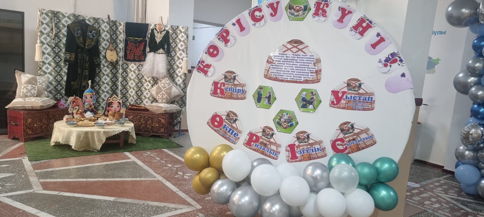 таныстырып, ұлтымыздың салт-дәстүрлерінің бірі –көрісу күнін насихаттау, үлкенге құрмет, кішіге ізет көрсете білуге және өзара сыйластыққа тәрбиелеу мақсатында 11 Б сынып жетекшісі Инара Идиятовнаның ұйымдастыруымен