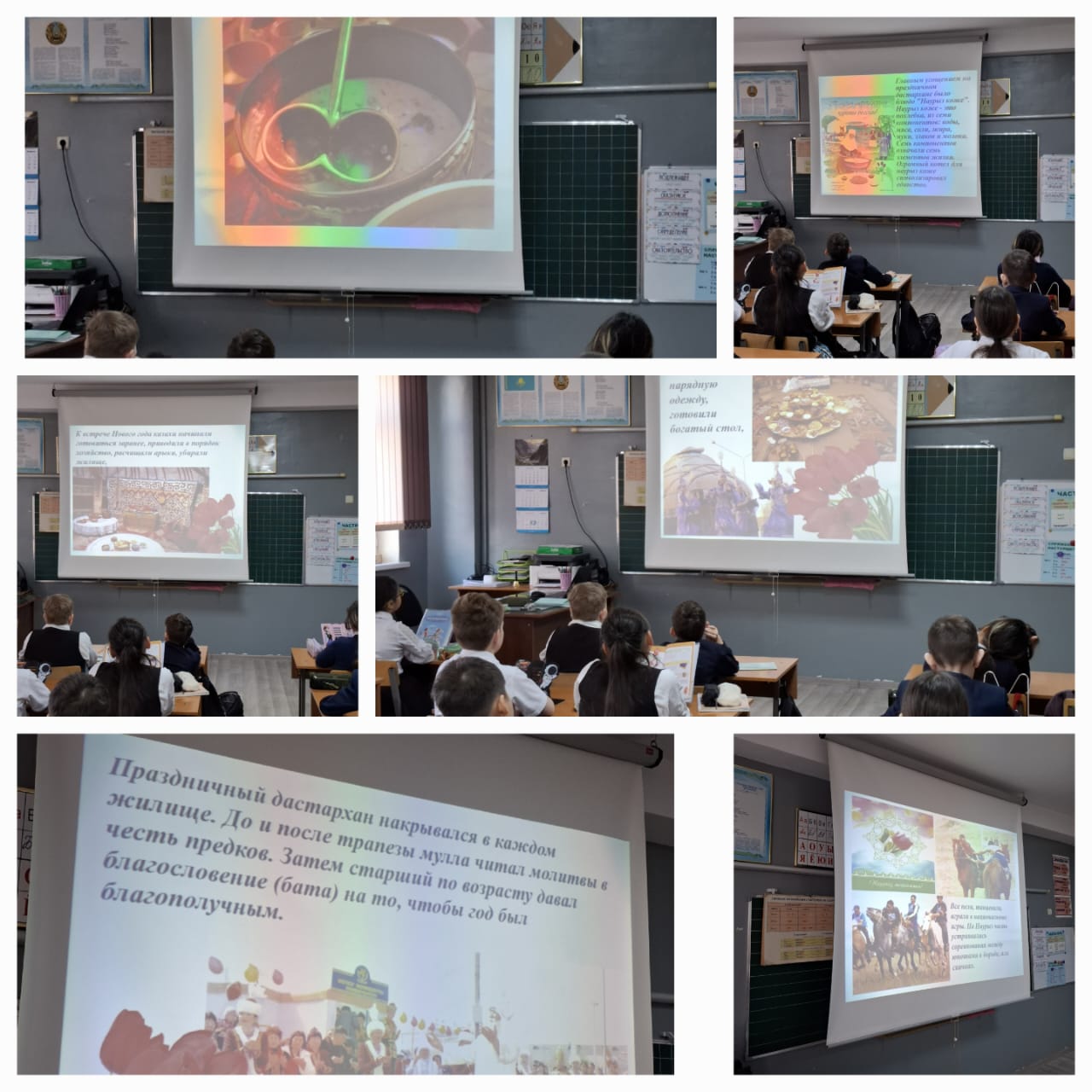 17 наурыз 2025 0 1 2 3 4 5 Сынып сағаты/Классный час Бүгін сынып сағатының тақырыбы " Наурыз: ата-бабаларымыздың салт-дәстүрлері". Сегодня темой классного часа был "Наурыз: традиции и обычаи предков"