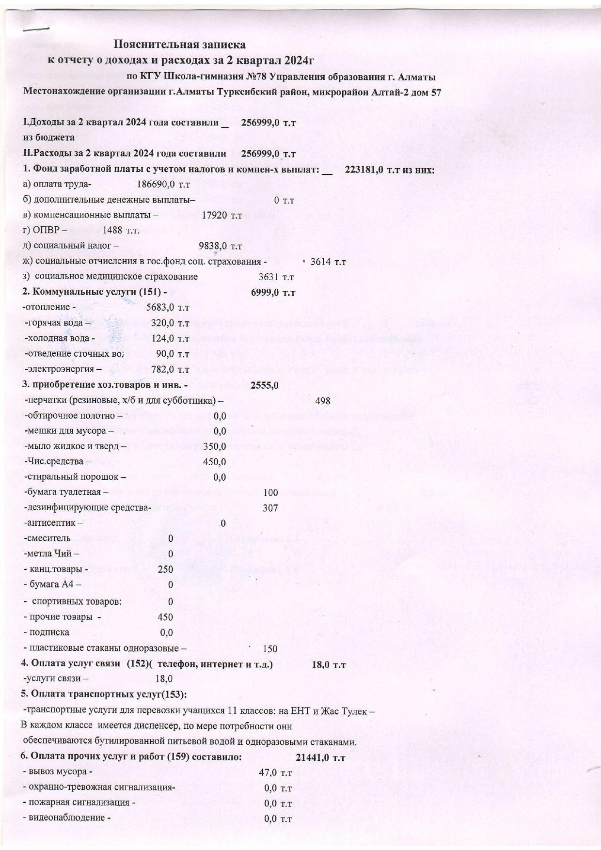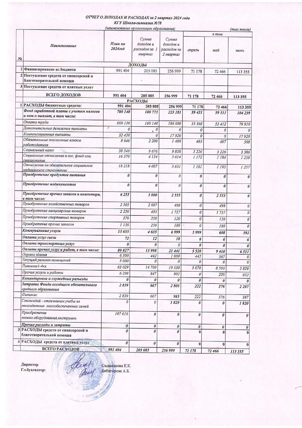 29 маусым 2024 0 1 2 3 4 5 2024 жылғы 2-тоқсанға кірістер мен шығыстар туралы есеп. Отчет о доходах и расходах за 2 квартал 2024года