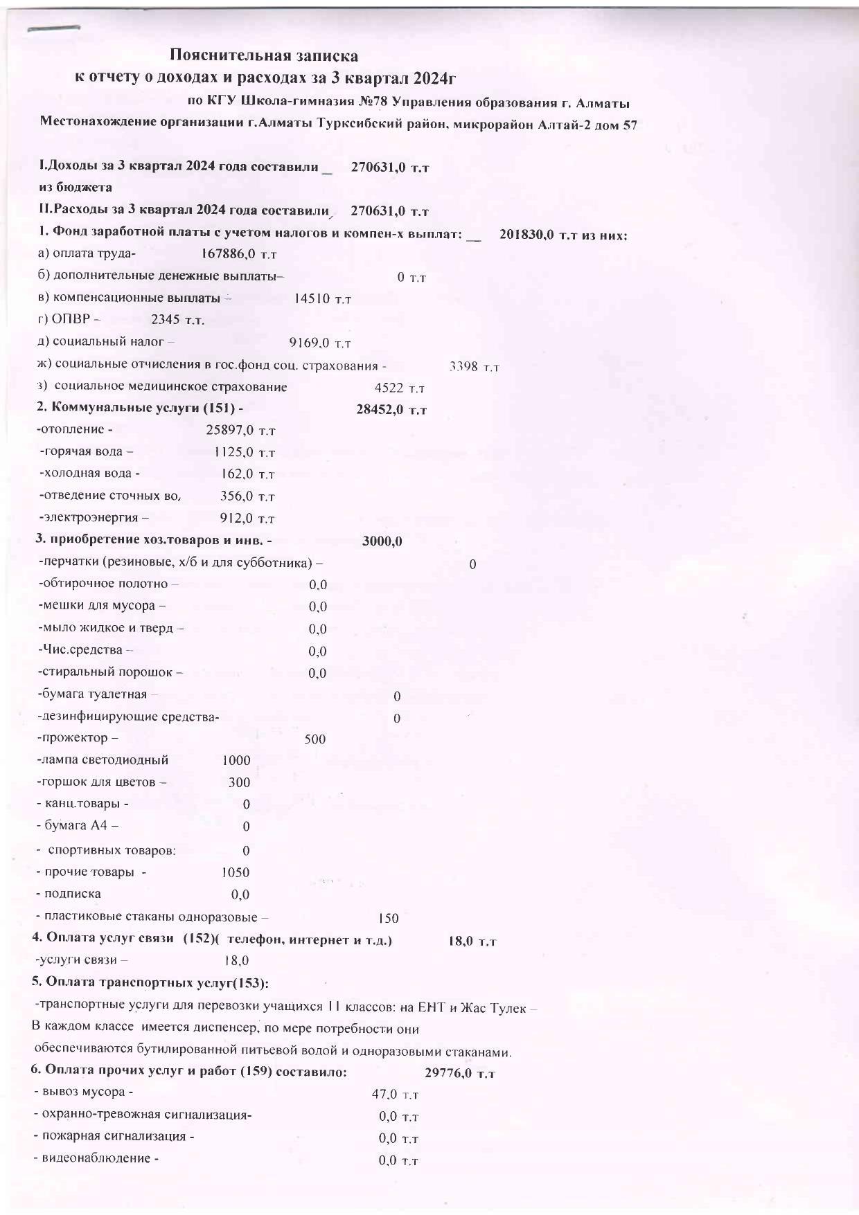 30 қыркүйек 2024 0 1 2 3 4 5 2024 жылғы 3-тоқсанға кірістер мен шығыстар туралы есеп. Отчет о доходах и расходах за 3 квартал 2024года