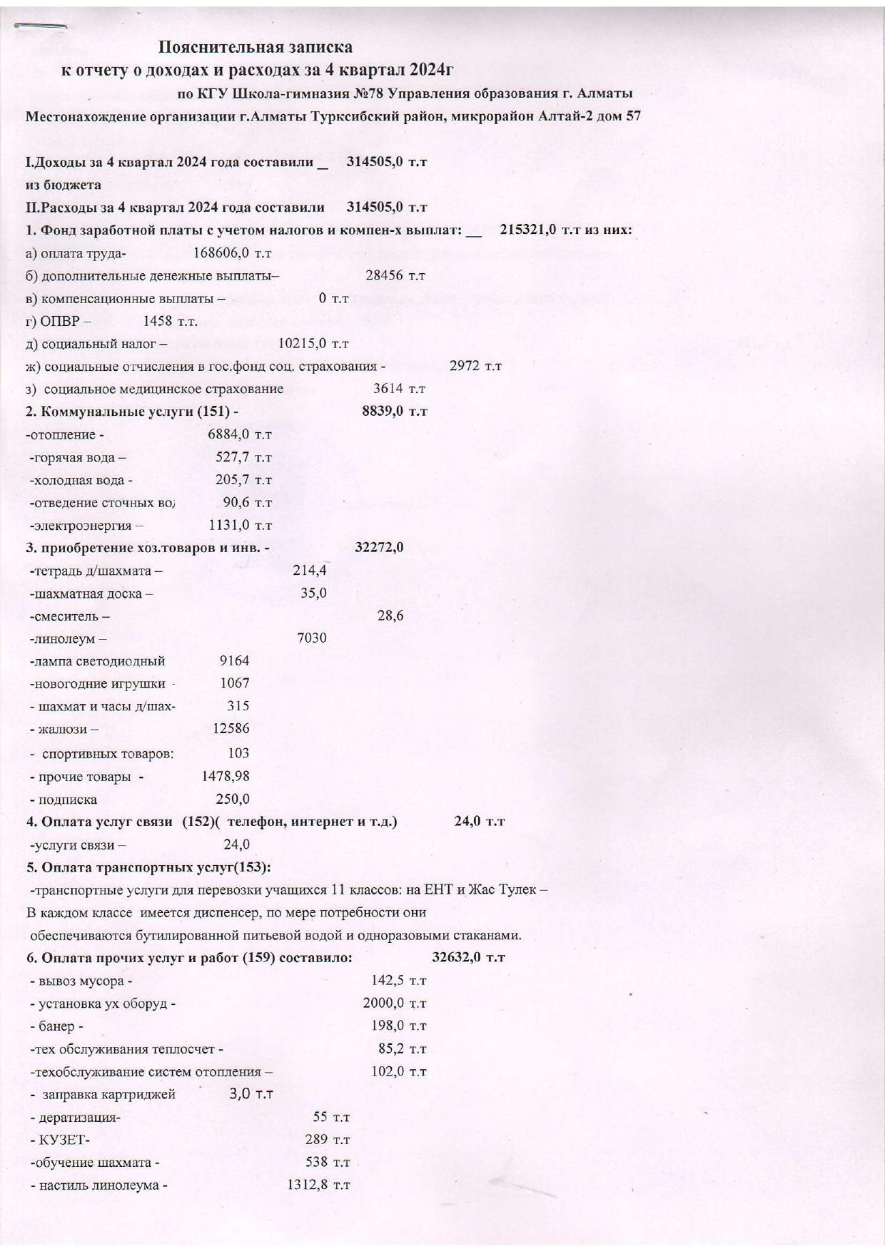 30 желтоқсан 2024 0 1 2 3 4 5 2024 жылғы 4-тоқсанға кірістер мен шығыстар туралы есеп. Отчет о доходах и расходах за 4 квартал 2024года