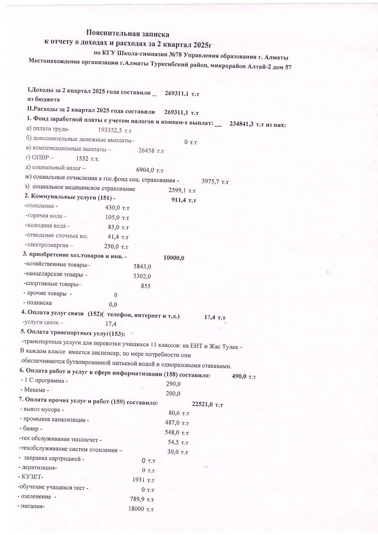 30 маусым 2025 0 1 2 3 4 5 2025 жылғы 2-тоқсанға кірістер мен шығыстар туралы есеп. Отчет о доходах и расходах за 2 квартал 2025года