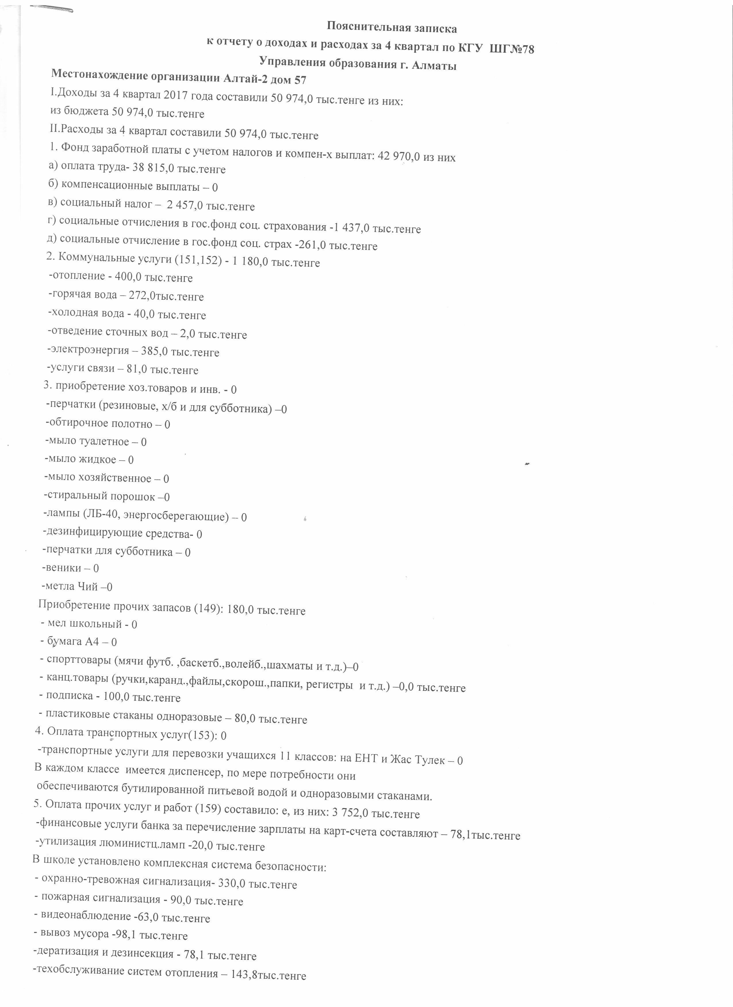 » Отчет о доходах и расходах за 4 кв 2017г