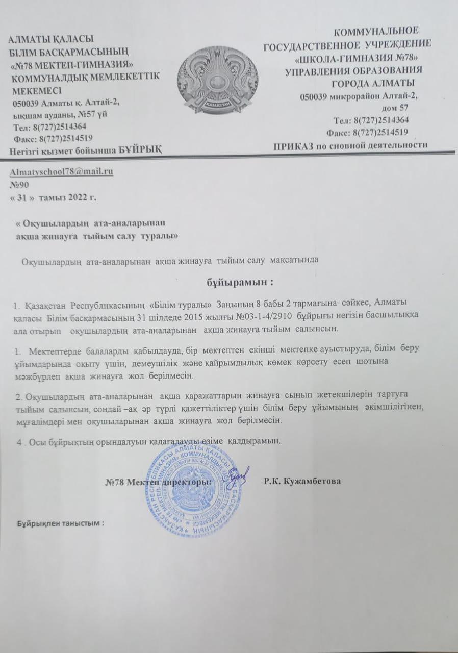 2022-2023 оқу жылына қаражат жинауға қарсылық бұйрығы