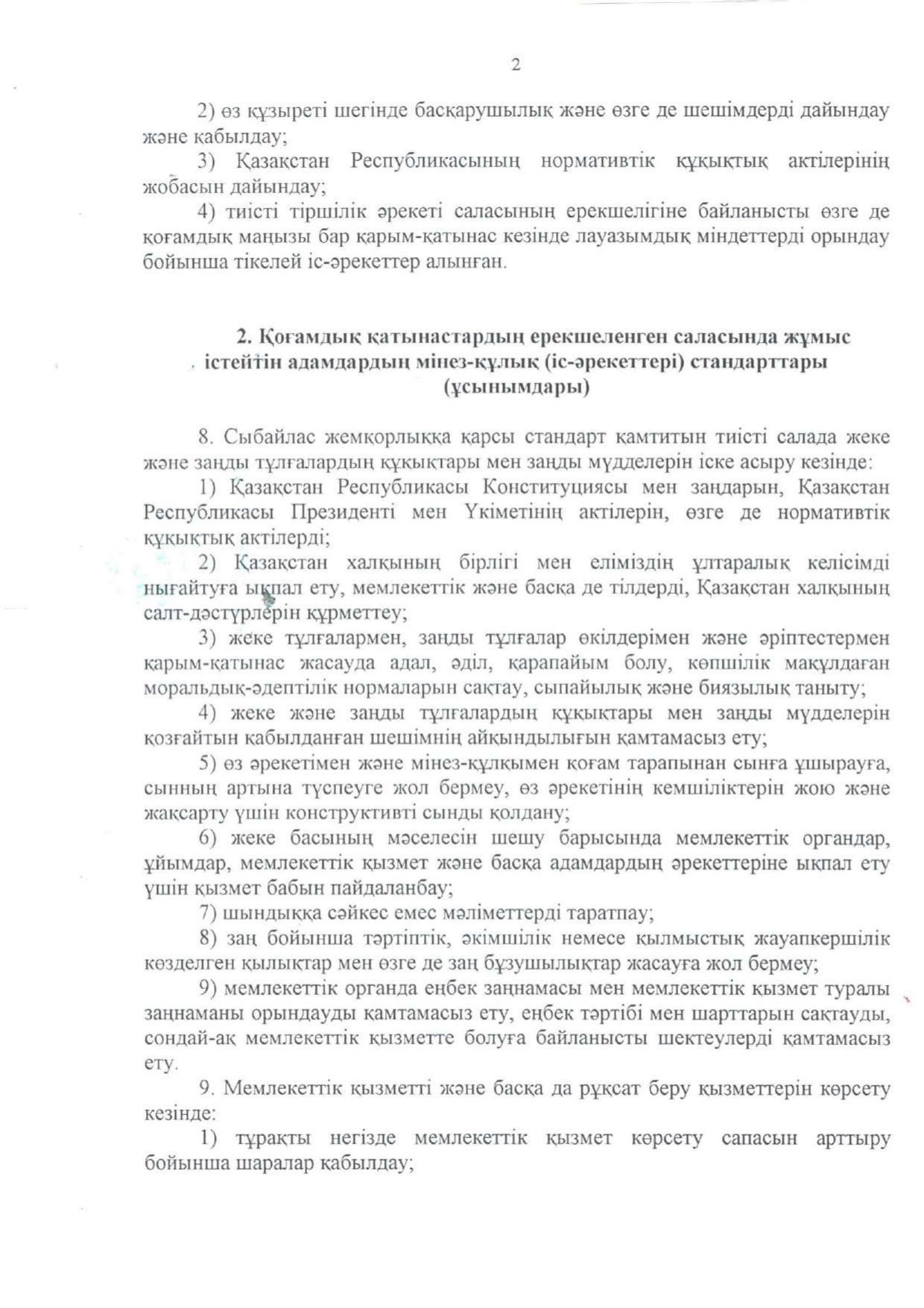 Сыбайлас жемқорлыққа қарсы стандартты бекіту туралы бұйрық