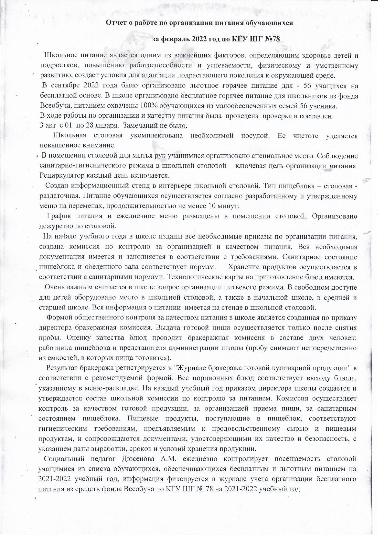 Отчет и справка по мониторингу качества питания за февраль 2022 года