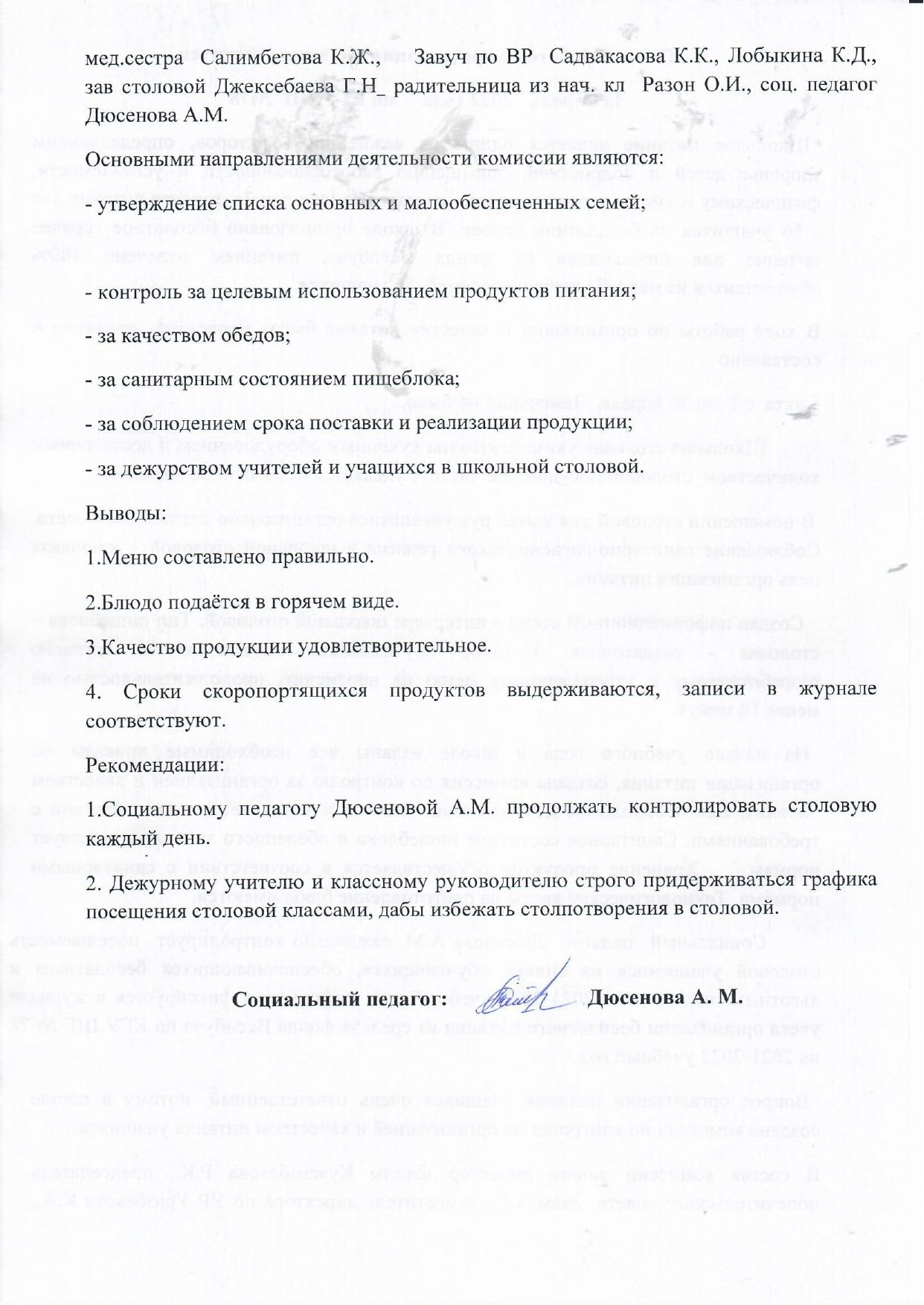 Справка по итогам проверки организации питания за март 2022 года