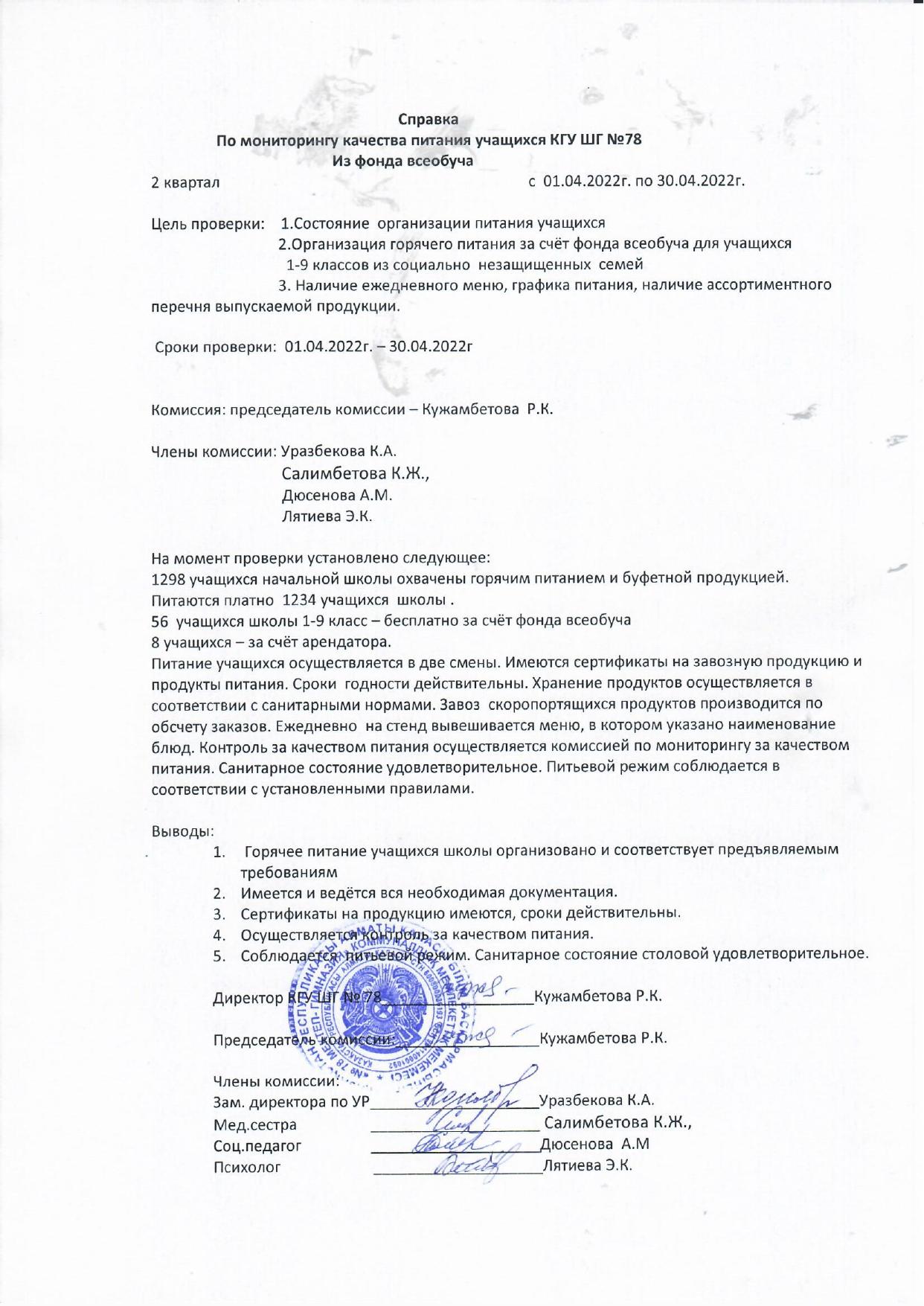 » Справка по итогам проверки организации питания за апрель 2022 года