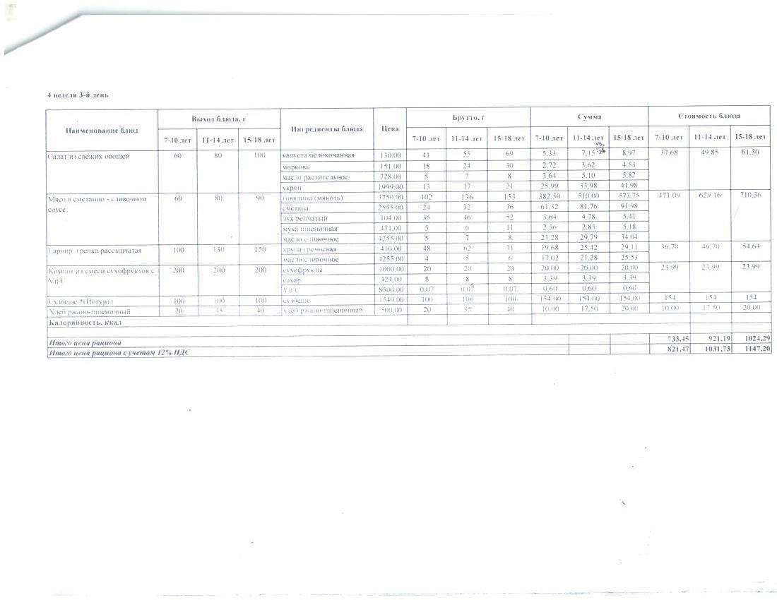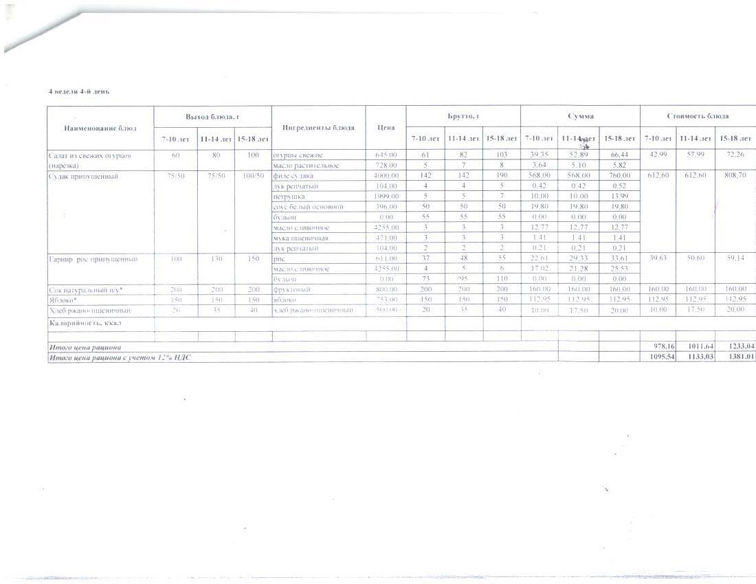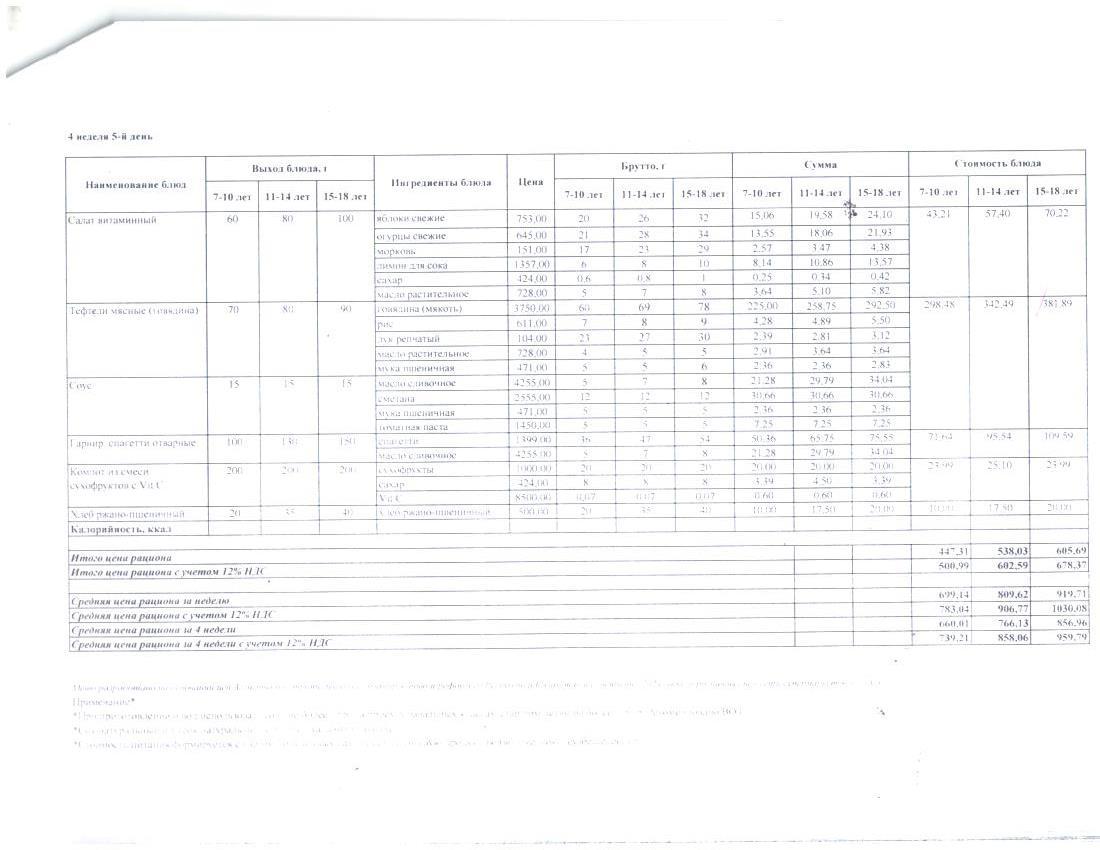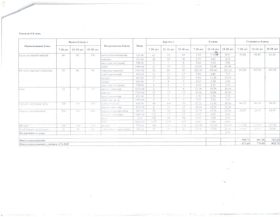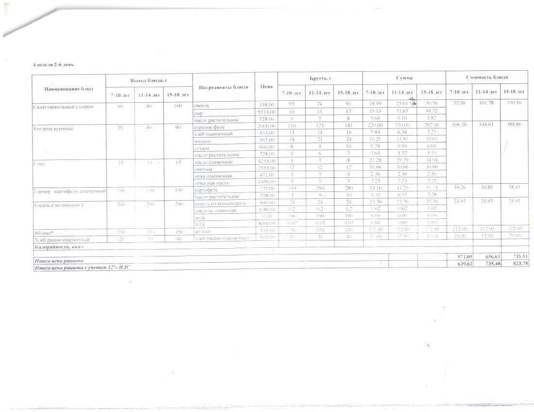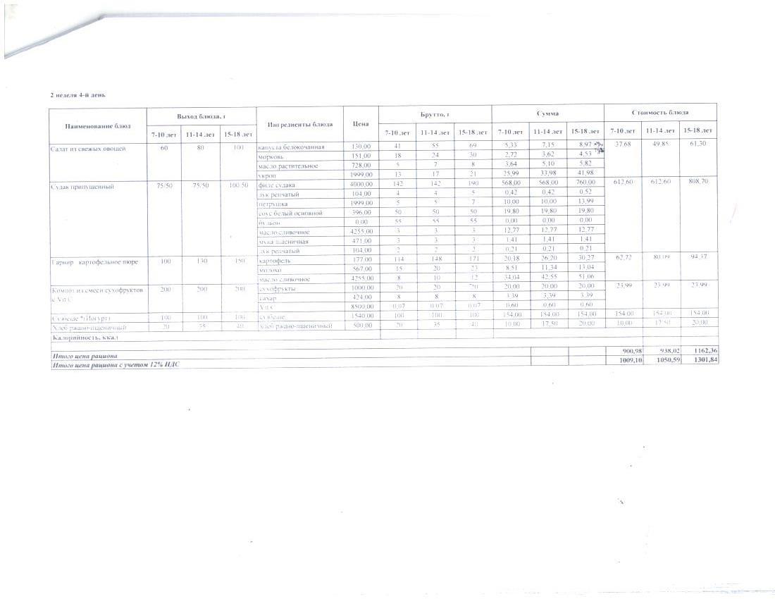 4 апталық ас мәзірі. Четырехнедельное меню блюд для организации бесплатного питания обучающихся в организациях среднего образования за счет бюджетных средств зима - весна
