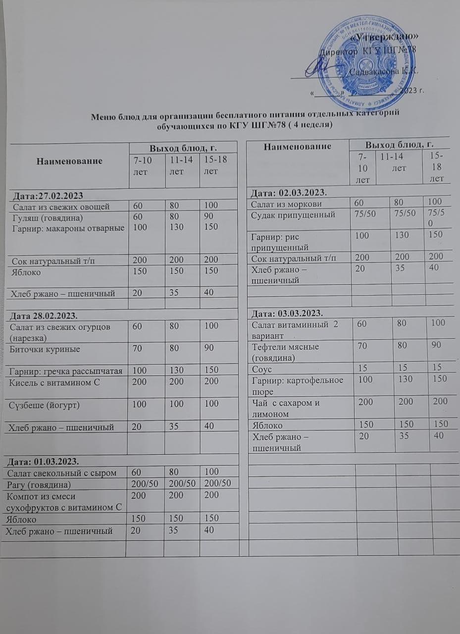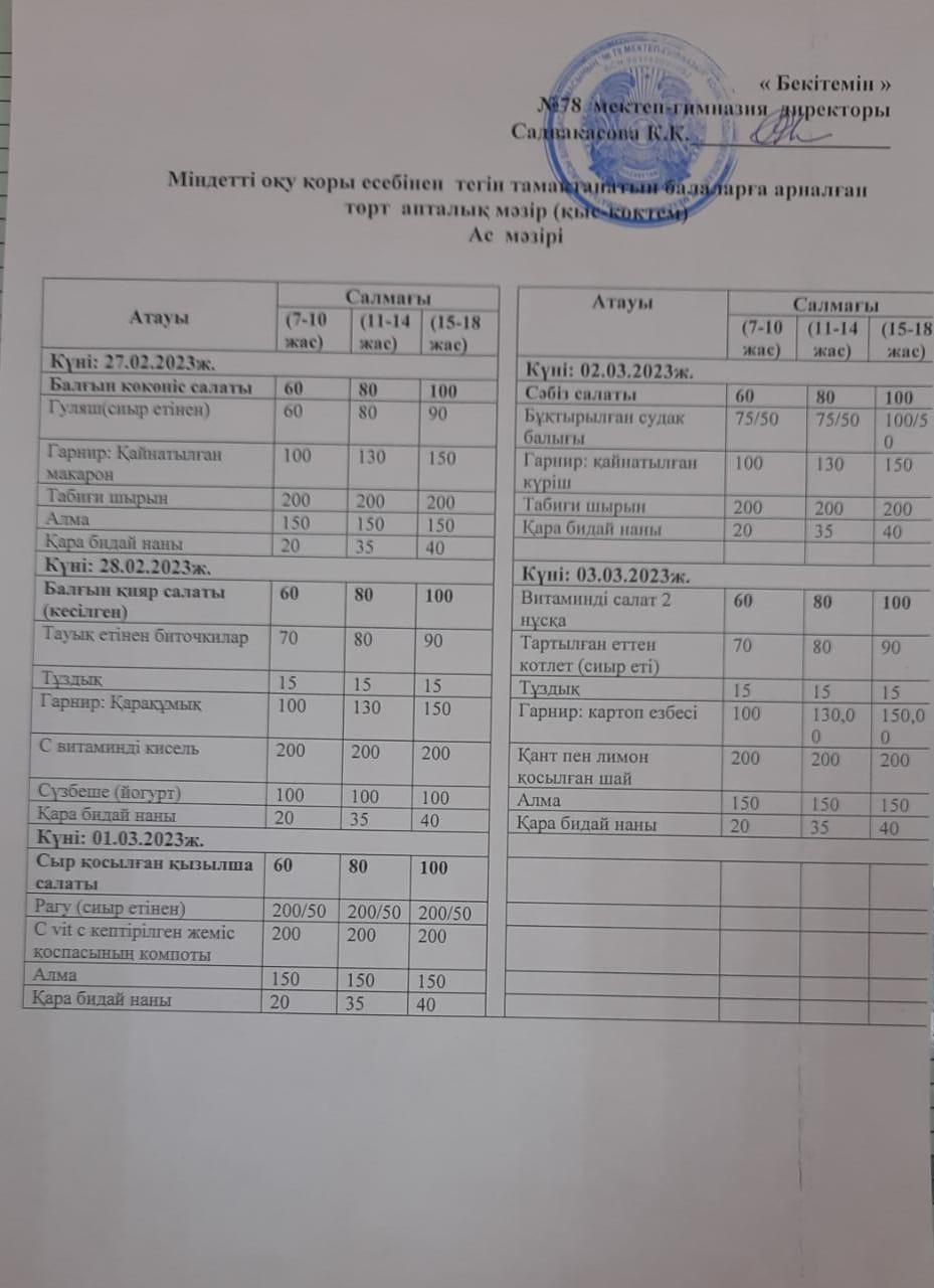 Ас мәзірі 1 апта