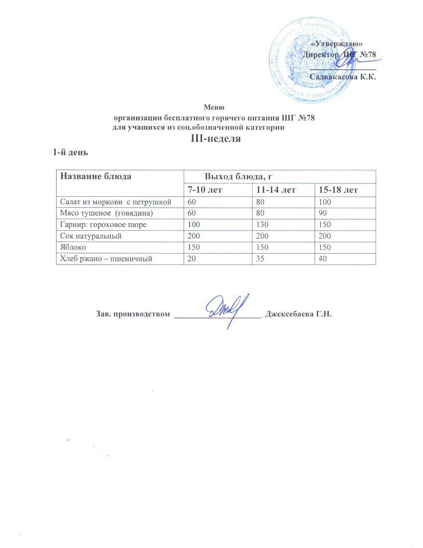 4 апталық ас мәзірі. Четырехнедельное меню блюд для организации бесплатного питания обучающихся в организациях среднего образования за счет бюджетных средств лето - осень