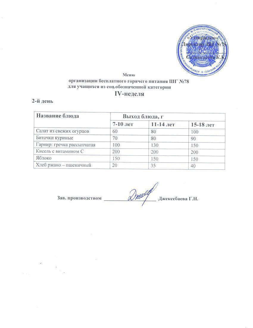 4 апталық ас мәзірі. Четырехнедельное меню блюд для организации бесплатного питания обучающихся в организациях среднего образования за счет бюджетных средств лето - осень