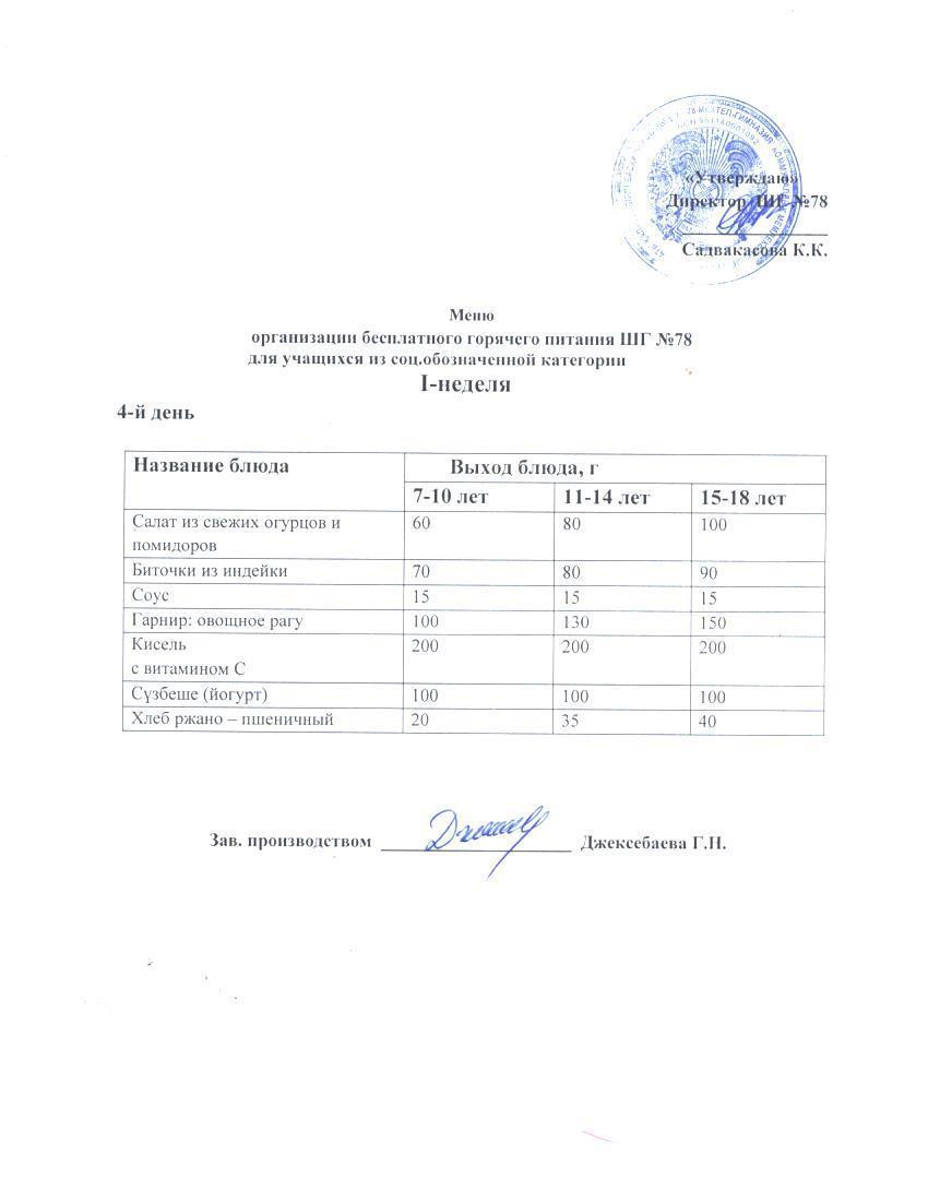 4 апталық ас мәзірі. Четырехнедельное меню блюд для организации бесплатного питания обучающихся в организациях среднего образования за счет бюджетных средств лето - осень