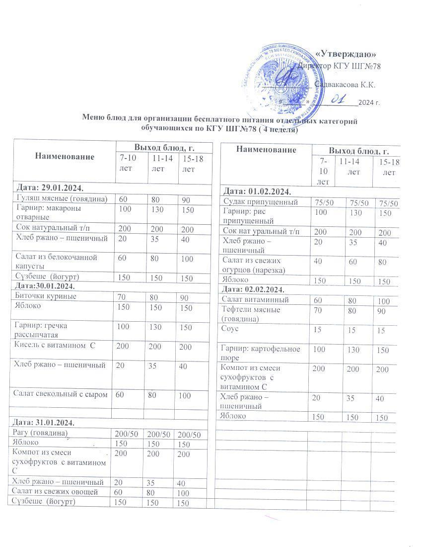 Ас мәзірі 1 апта