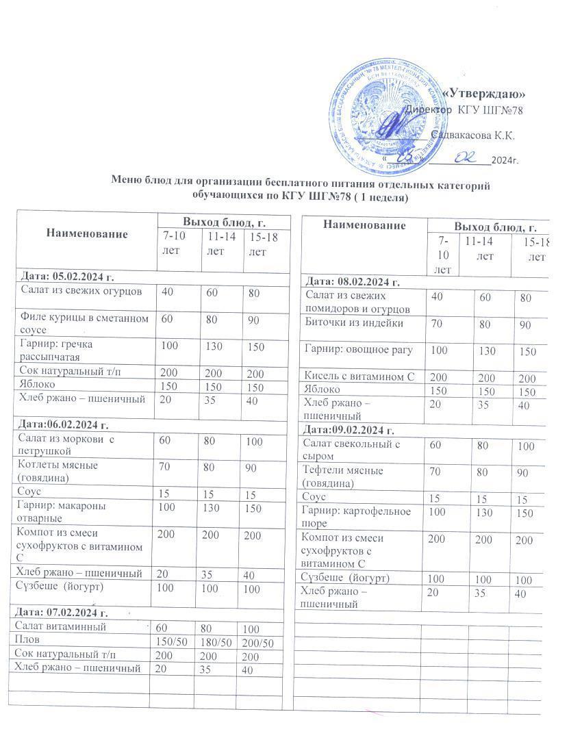 Ас мәзірі 1 апта