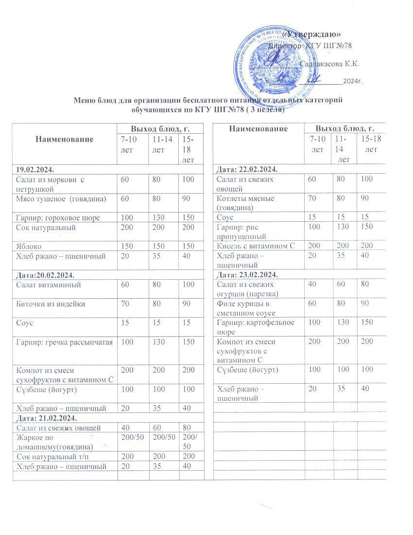 Ас мәзірі 1 апта