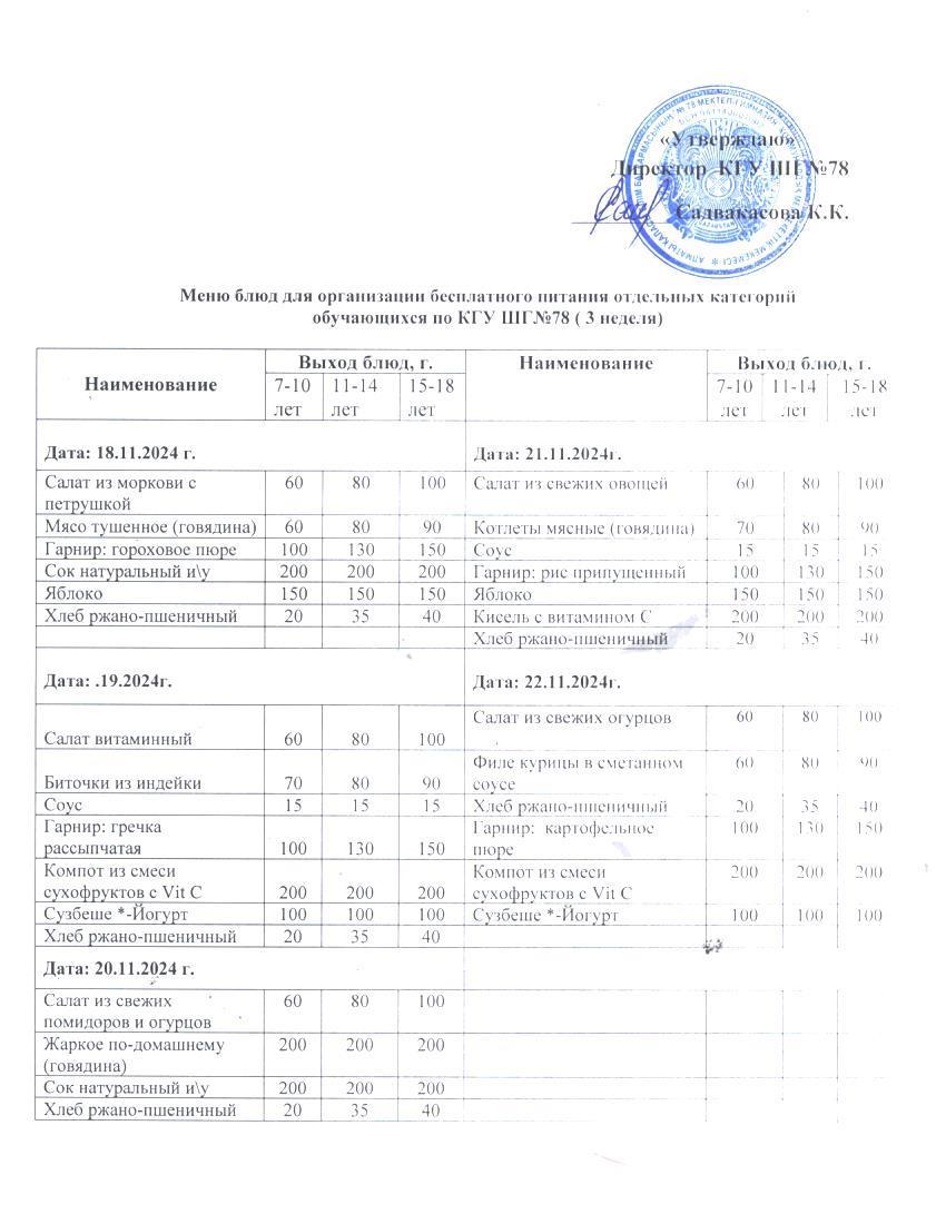 » Ас мәзірі 1 апта