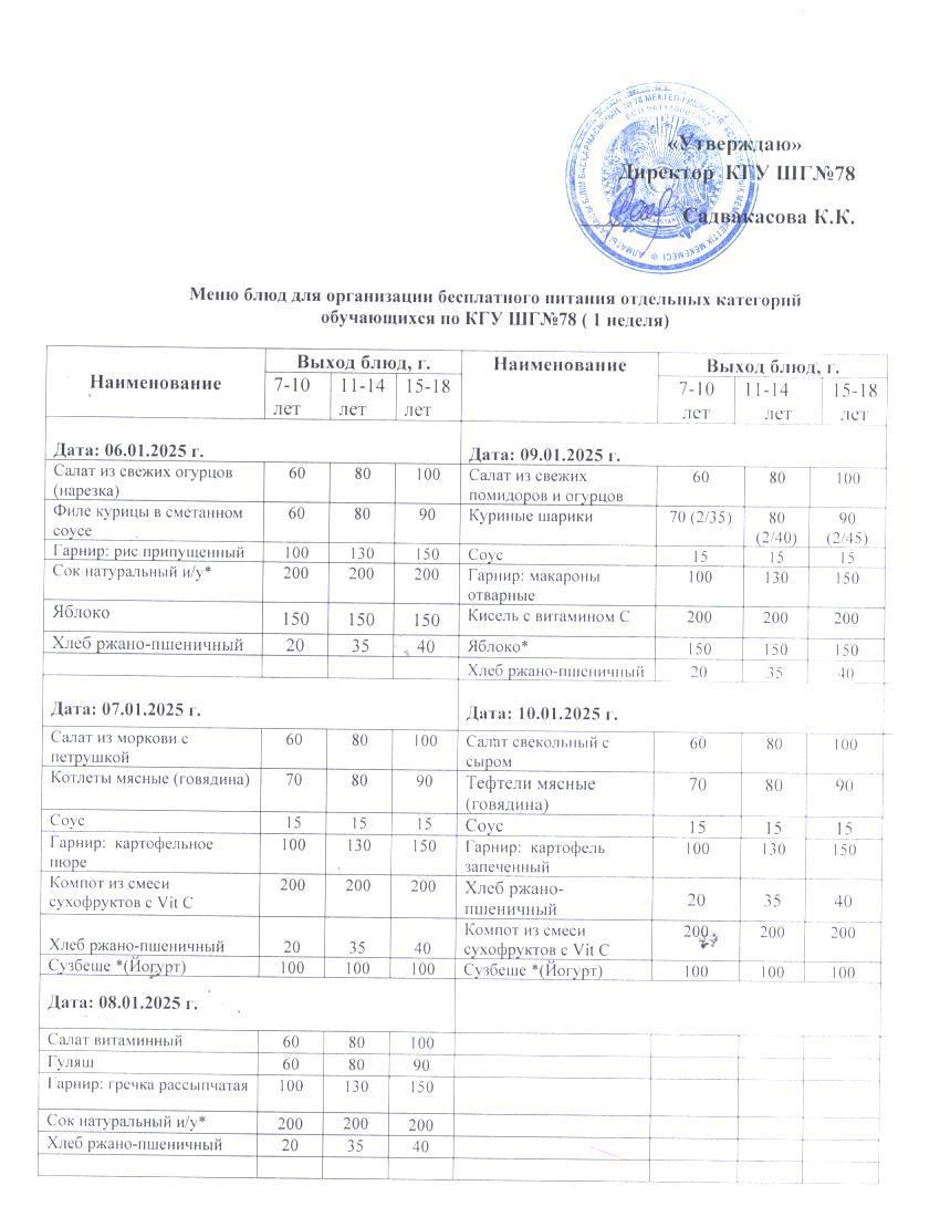 Ас мәзірі 1 апта