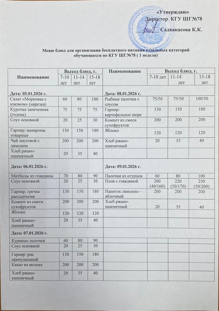 Ас мәзірі 1 апта