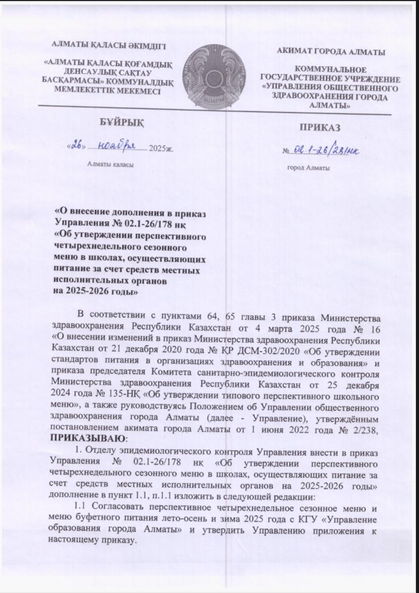 » Ас мәзірі қыс- көктем 2026 жыл.