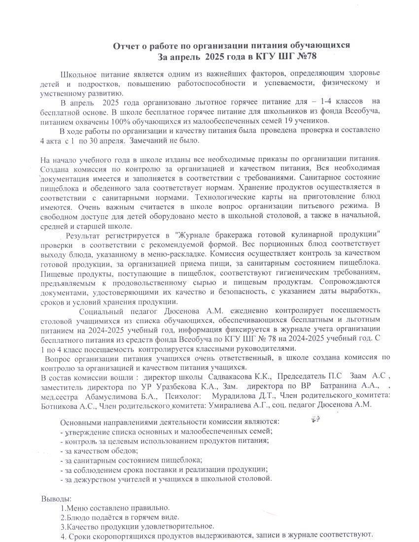 Бақылау комиссиясының 2024 ж. сәуір айына есебі.