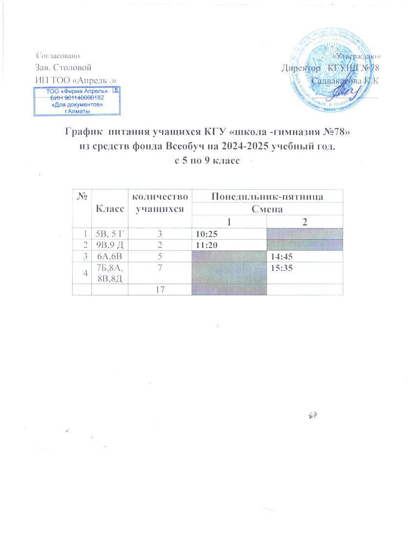Оқушылардың асханаға бару кестесі. Асхана режимінің жұмыс кестесі