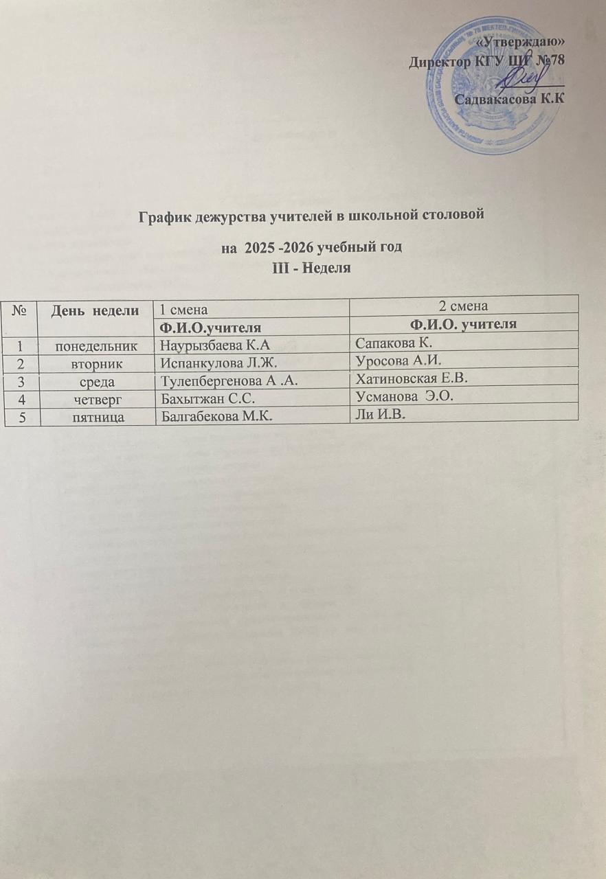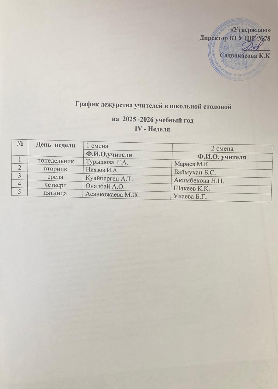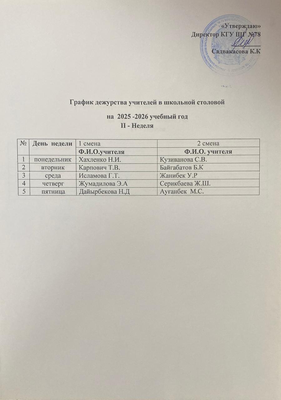2025-2026 оқу жылына асхананың кезекші муғалімдер тізімі.